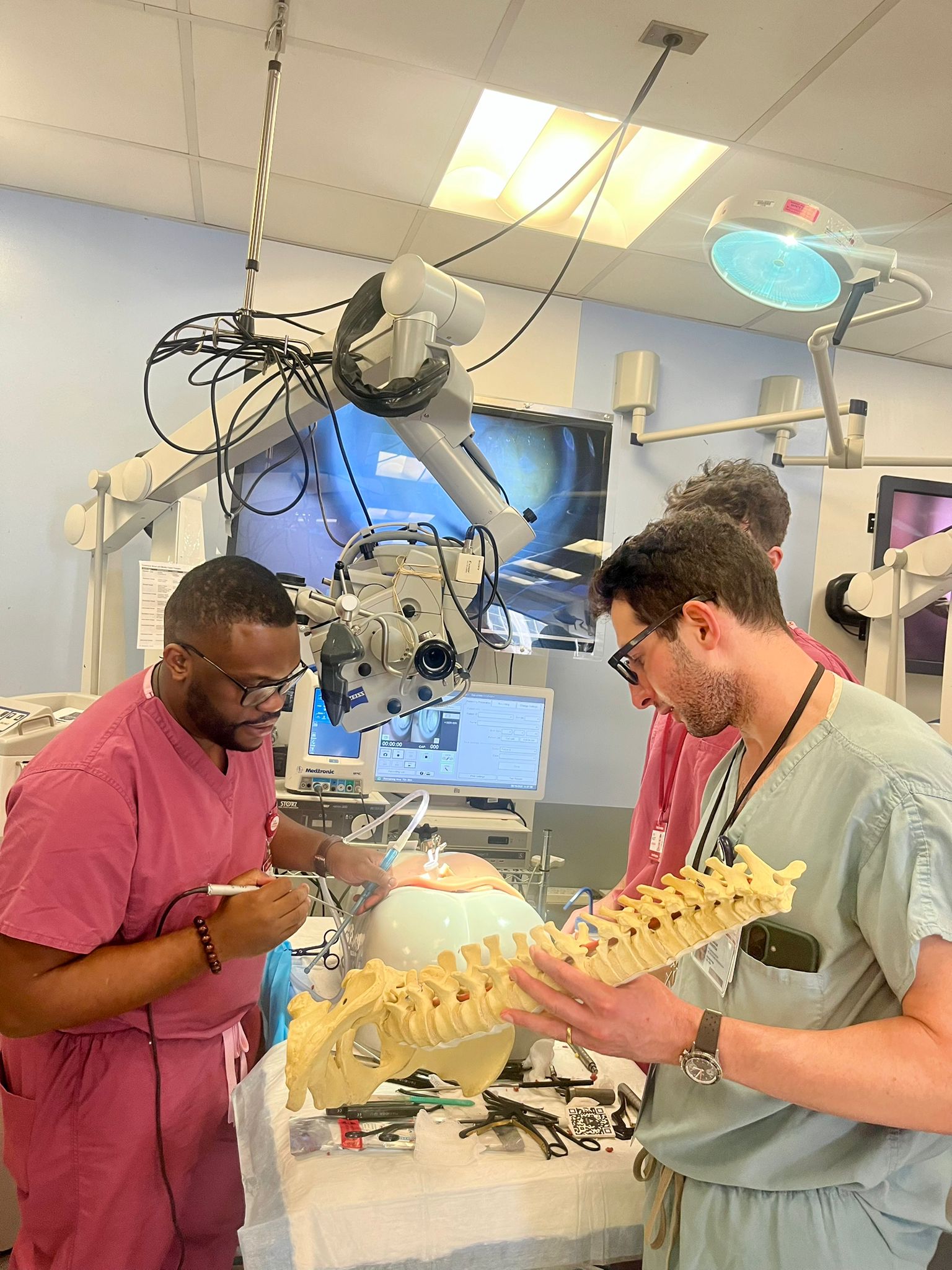 Practice on cutting-edge RealSpine models at the Weill Cornell Medicine Neurosurgical Innovations and Training Center.